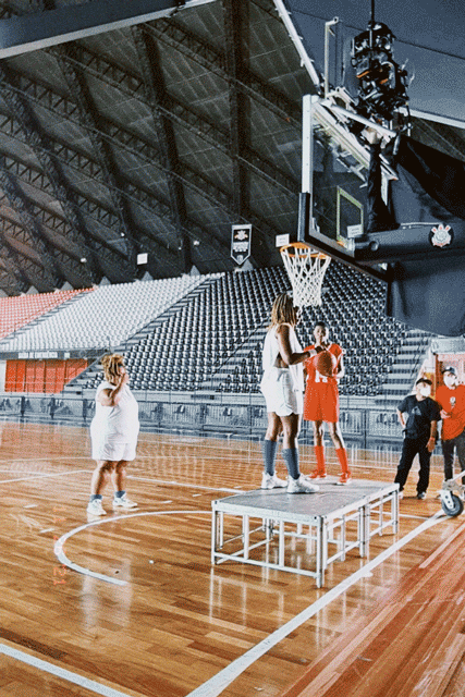 To start, a true legend stepped in: Oscar Schmidt, “Mão Santa,” made his can shot at home, then challenged queen Janeth and NBA player Raulzinho.